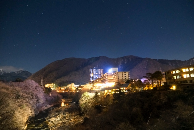 - 立ち寄りたい!周辺の桜の名所:【鬼怒川温泉 桜並木・護国神社】宿からすぐの鬼怒川温泉街には美しい桜並木があり、温泉街の風情を感じながらの散策にぴったりです。夜には護国神社周辺などで桜のライトアップも行われ、幻想的な夜桜を楽しめます。